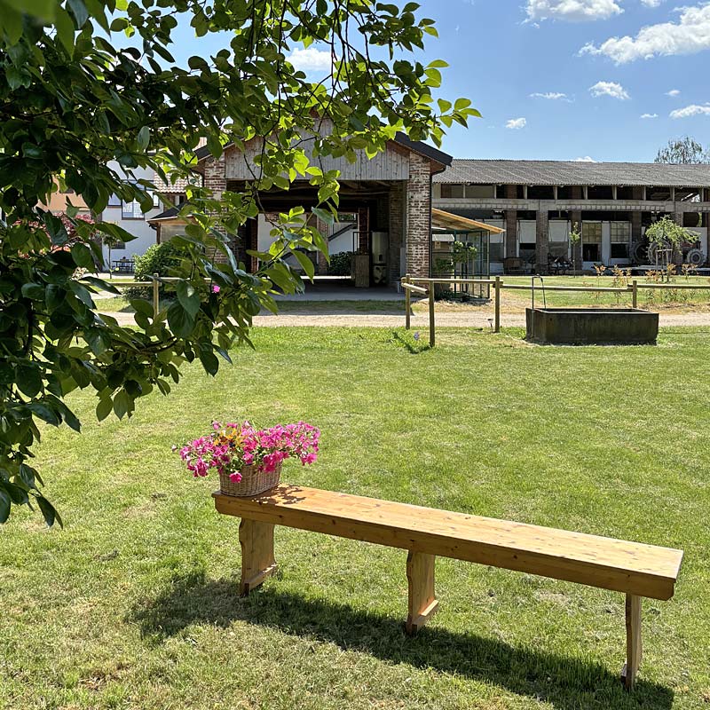 Cascina Scuclina è un luogo che profuma di storia e tradizione: due grandi corti raccontano ancora oggi la vita contadina di un tempo. Una, dedicata al lavoro nei campi, l’altra, circondata da portici e giardini, custode di momenti di incontro e convivialità. L’antica aia, che un tempo risuonava di voci e passi, oggi accoglie chi arriva in visita.
